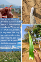 • We only use essential oils in our products. Essential oils carry powerful antioxidants that help to soothe and rejuvenate the skin. They also leave behind their wonderful natural aroma. This aroma is not from a fragrance or an aroma oil. It is from the real steam distilled essential oil