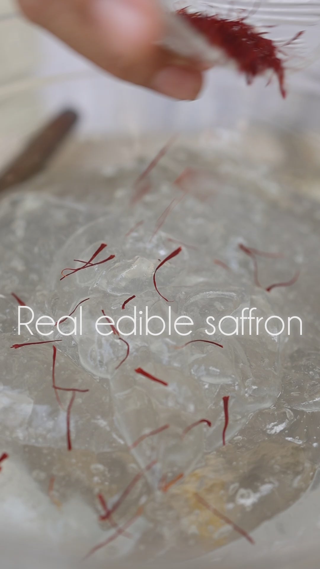 • Do note that the color of the gel may become lighter over time. This is because aloe vera tends to keep dissolving saffron over time. The effectiveness is not changed but the appearance might become lighter. This is a sign of using edible saffron for infusion