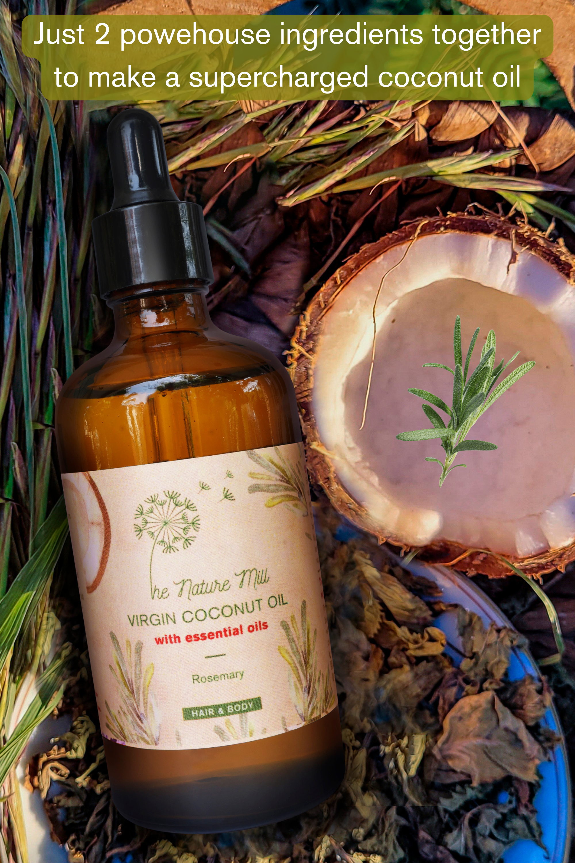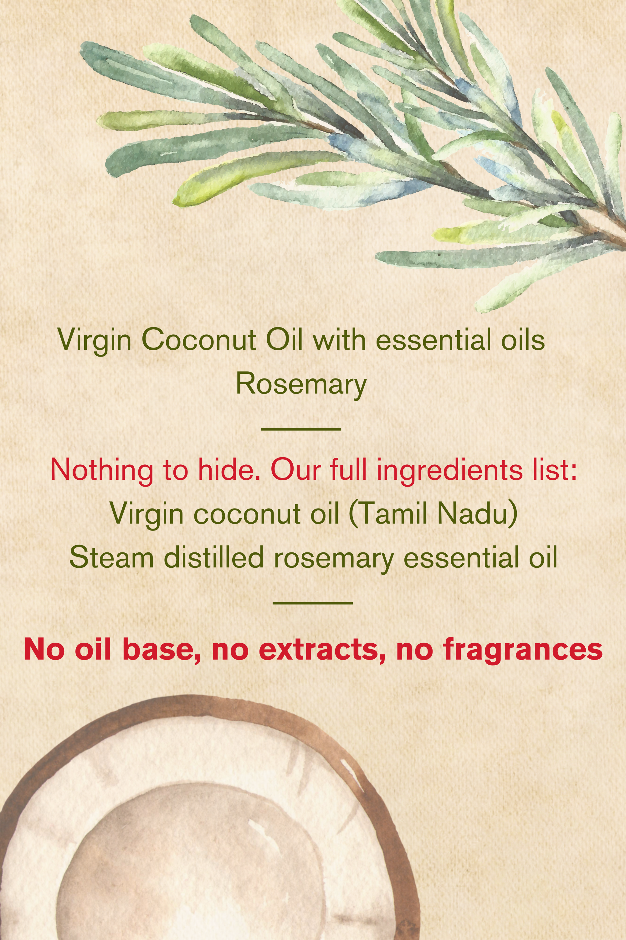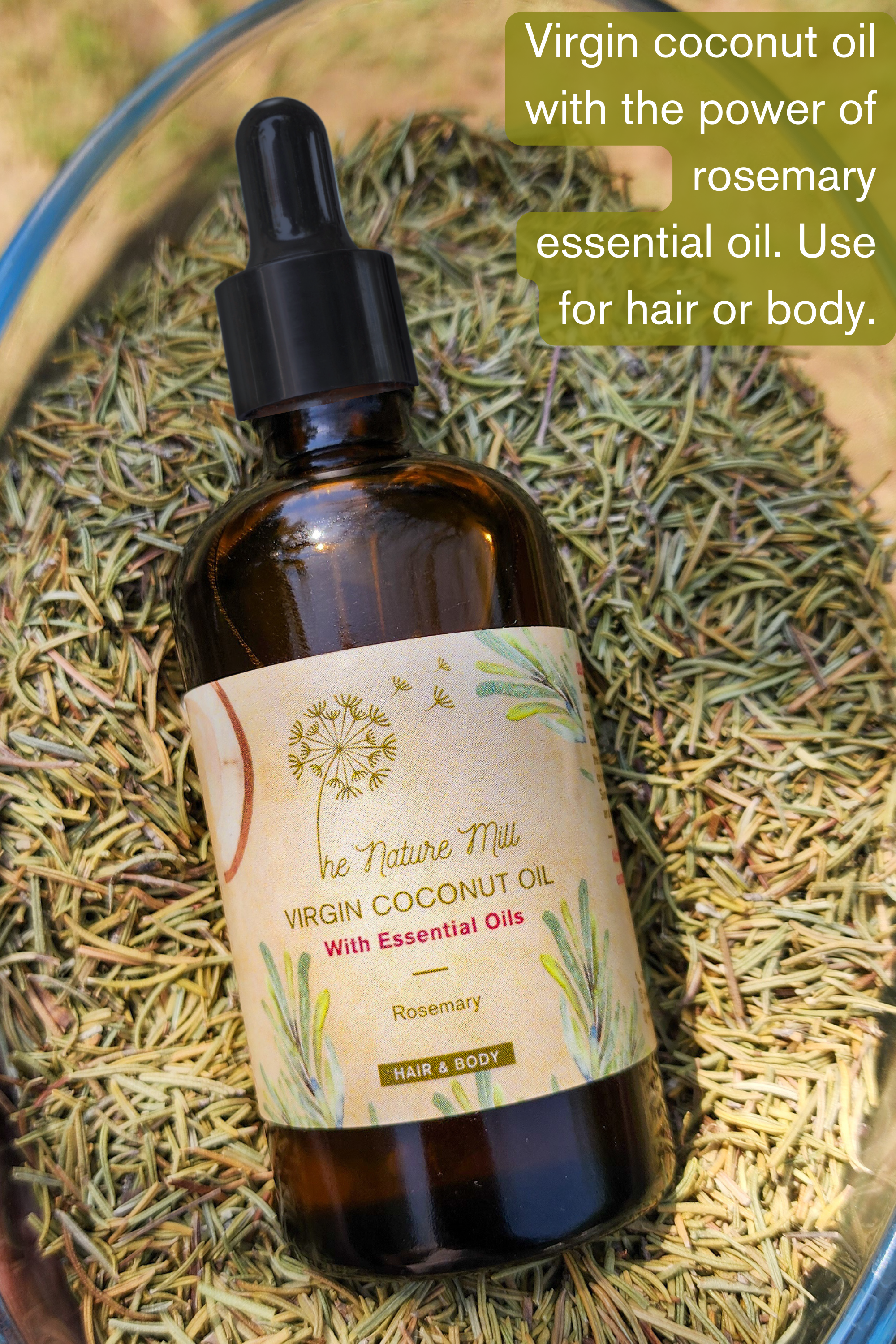 Virgin coconut oil with Rosemary essential oil (Hair & body) | 100ml