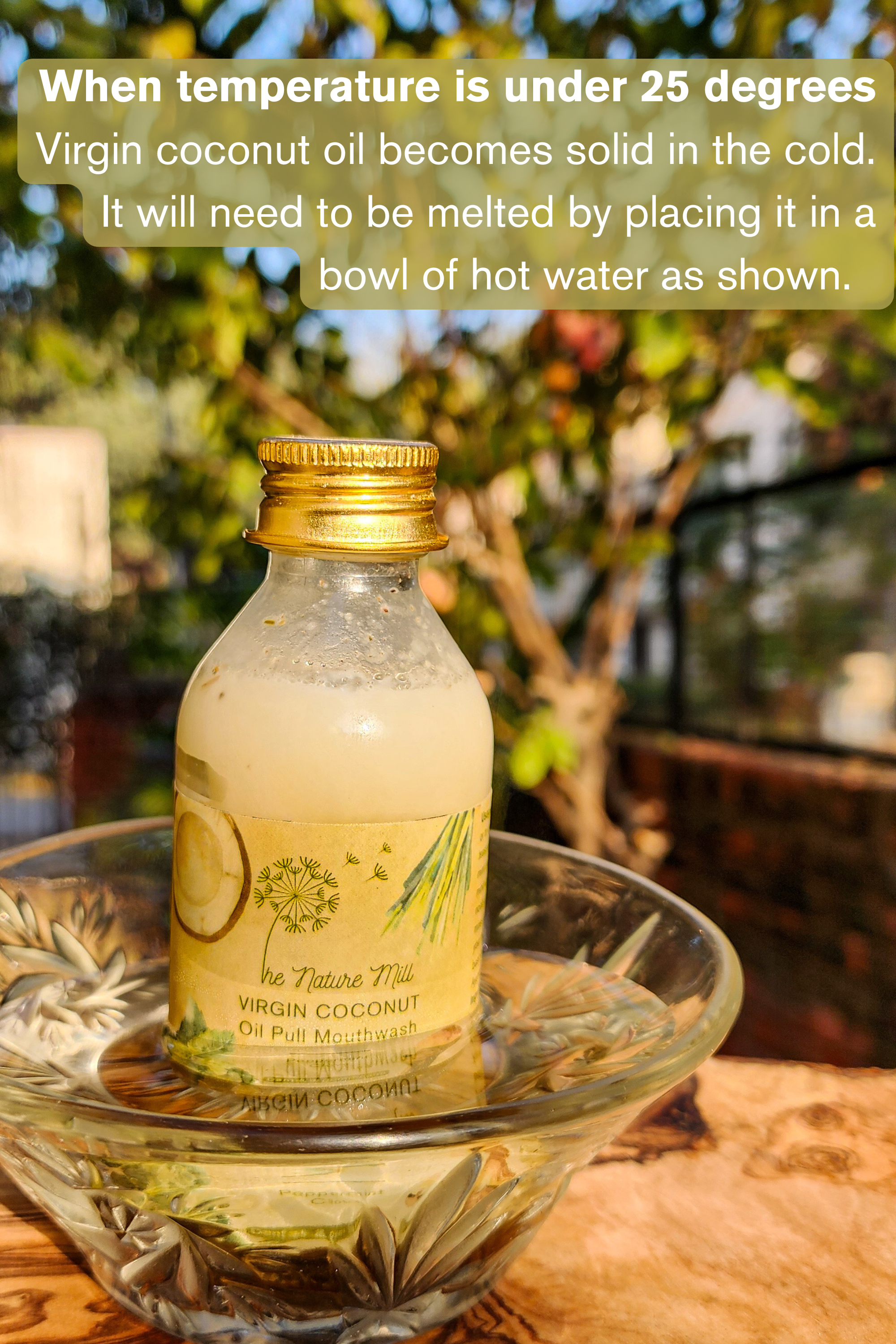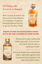 UsageShake well before use. Use for oil pulling or to replace a regular mouthwash. Take 1 teaspoon of the oil in your mouth. Chew the bits of mint and clove. Swirl the oil in your mouth for a minimum of 2 minutes. Do not swallow. You will notice the volume increase in your mouth as the oil mixes with saliva. Spit out after you are done. Rinse your mouth with water. Do not spit into a wash basin as it can block the wash basin drains. Ayurveda recommends oil pulling for 15 min Do note that when the temperature is under 25 degrees Celsius, coconut oil becomes solid. It will need to be melted by placing the bottom half of the bottle in a bowl of warm/ hot water. This melts the coconut oil in a few minutes and it is ready to use. It is the same process you would use to melt regular coconut oil in low temperatures. |