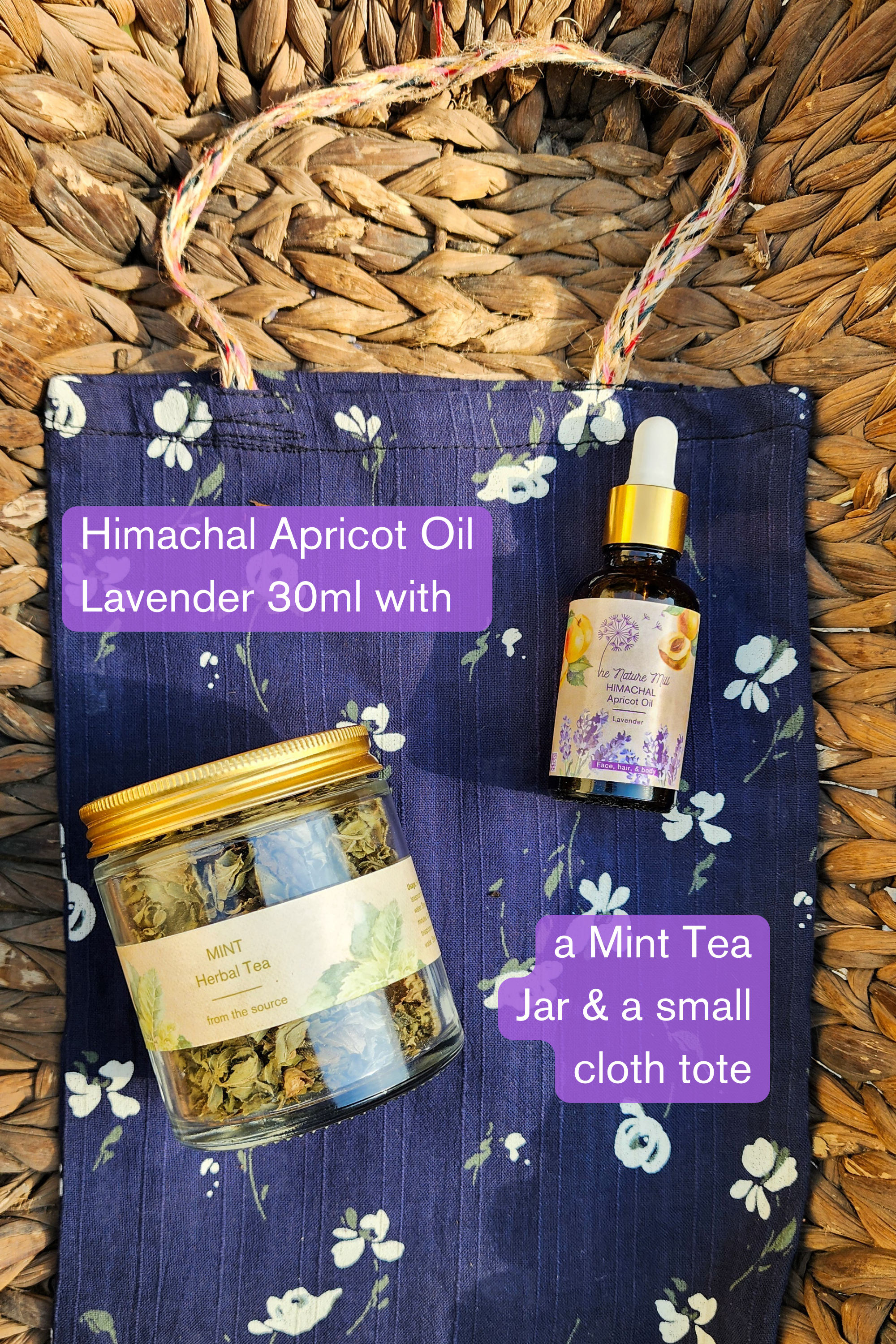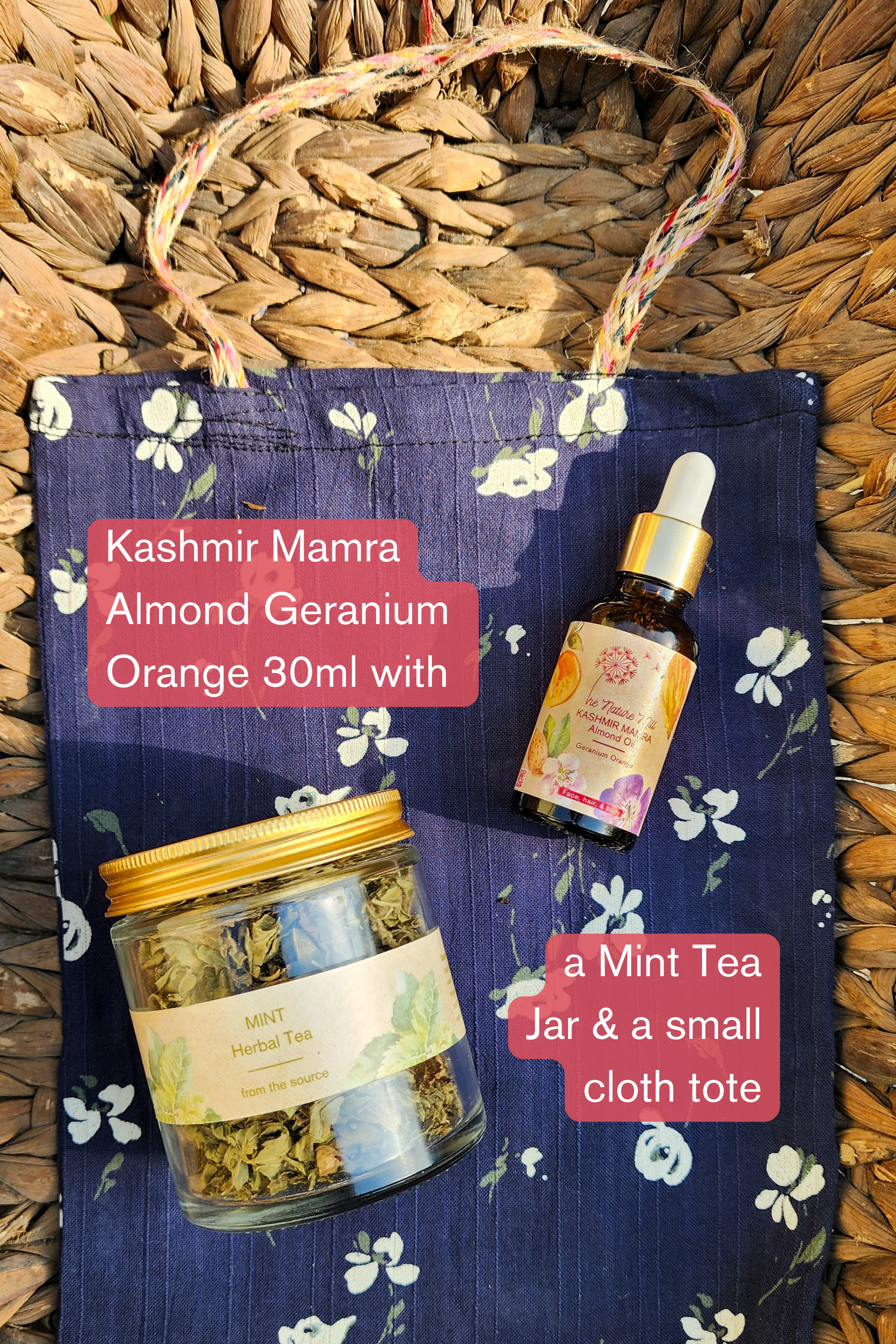 A jar of mint tea & a small tote along with