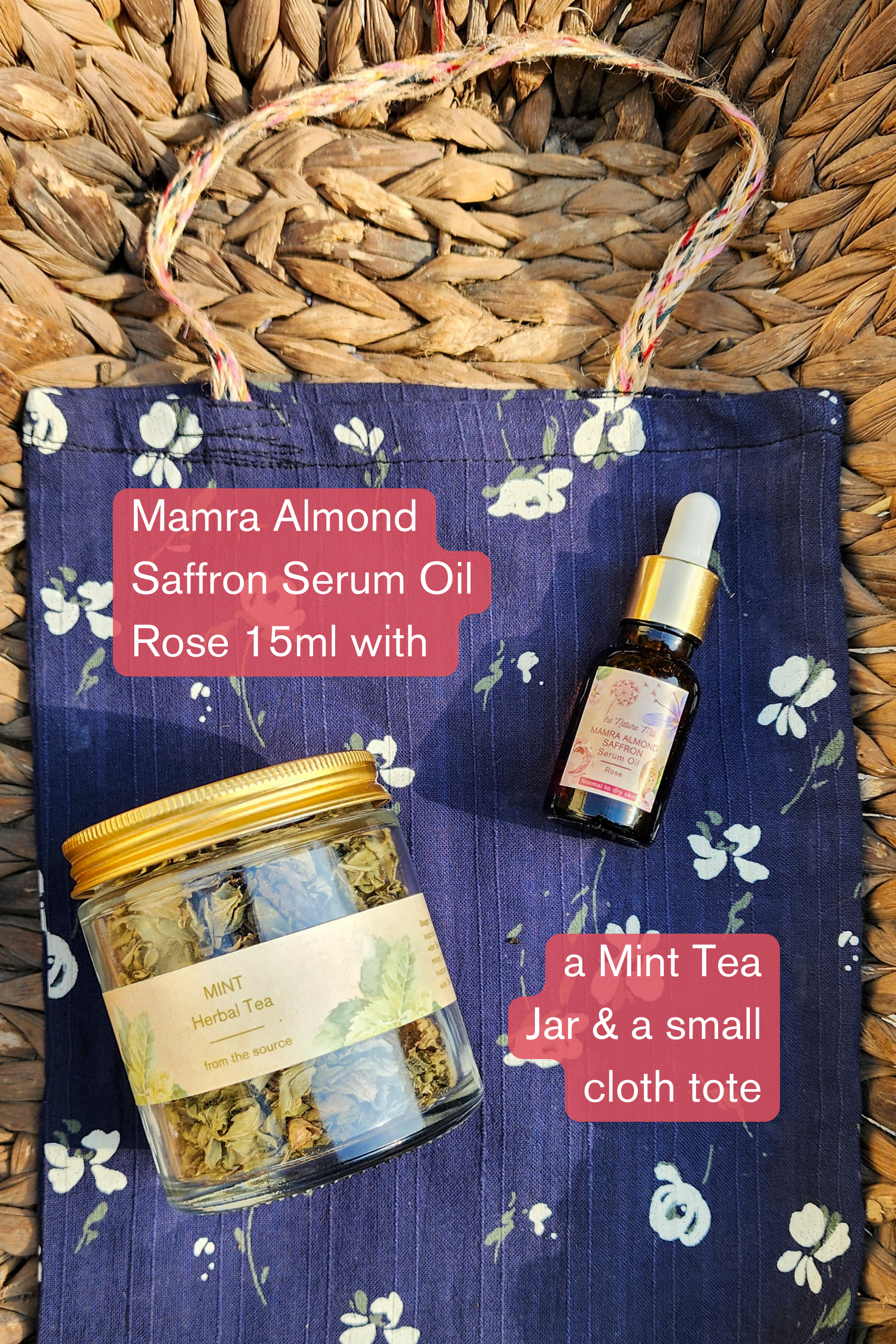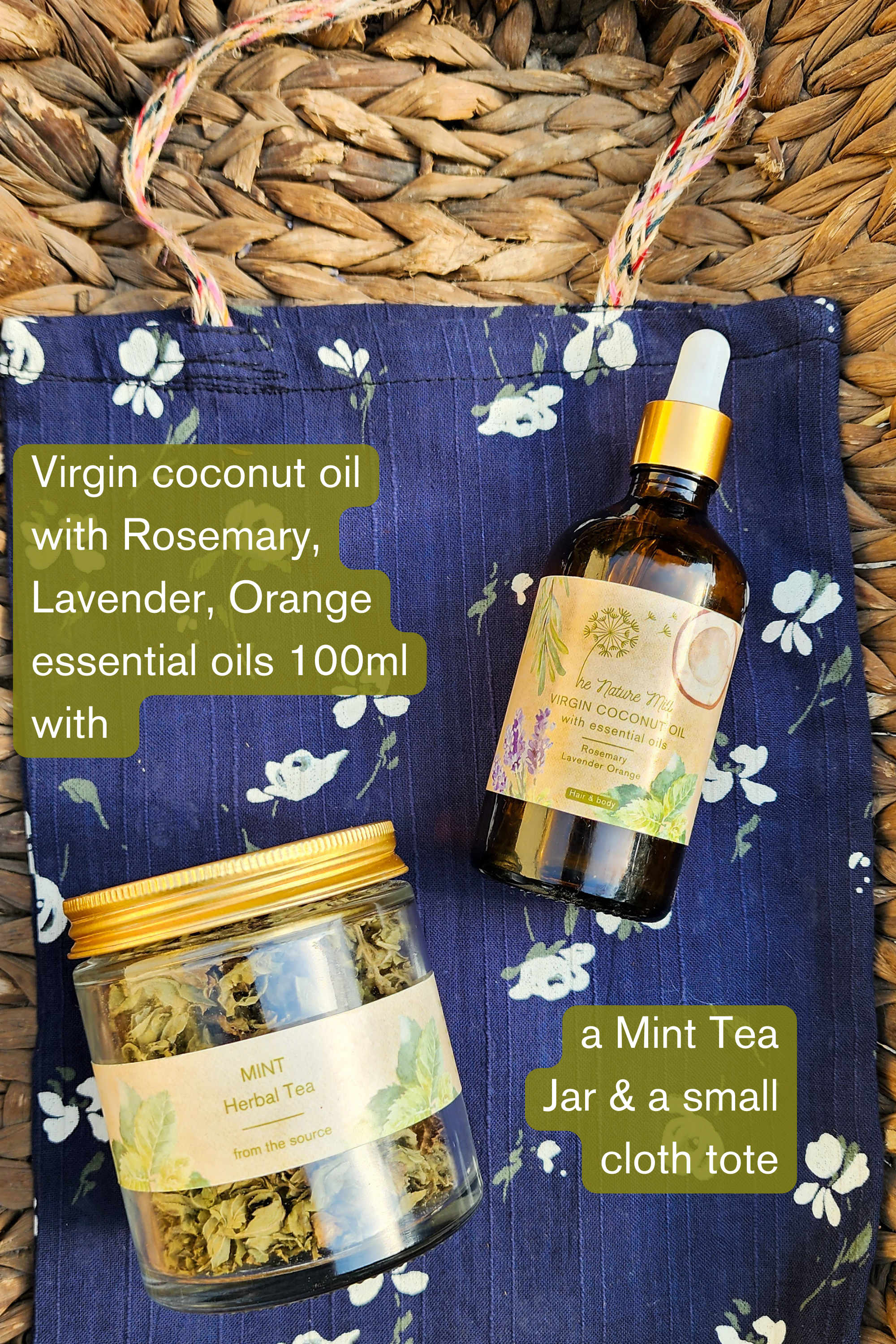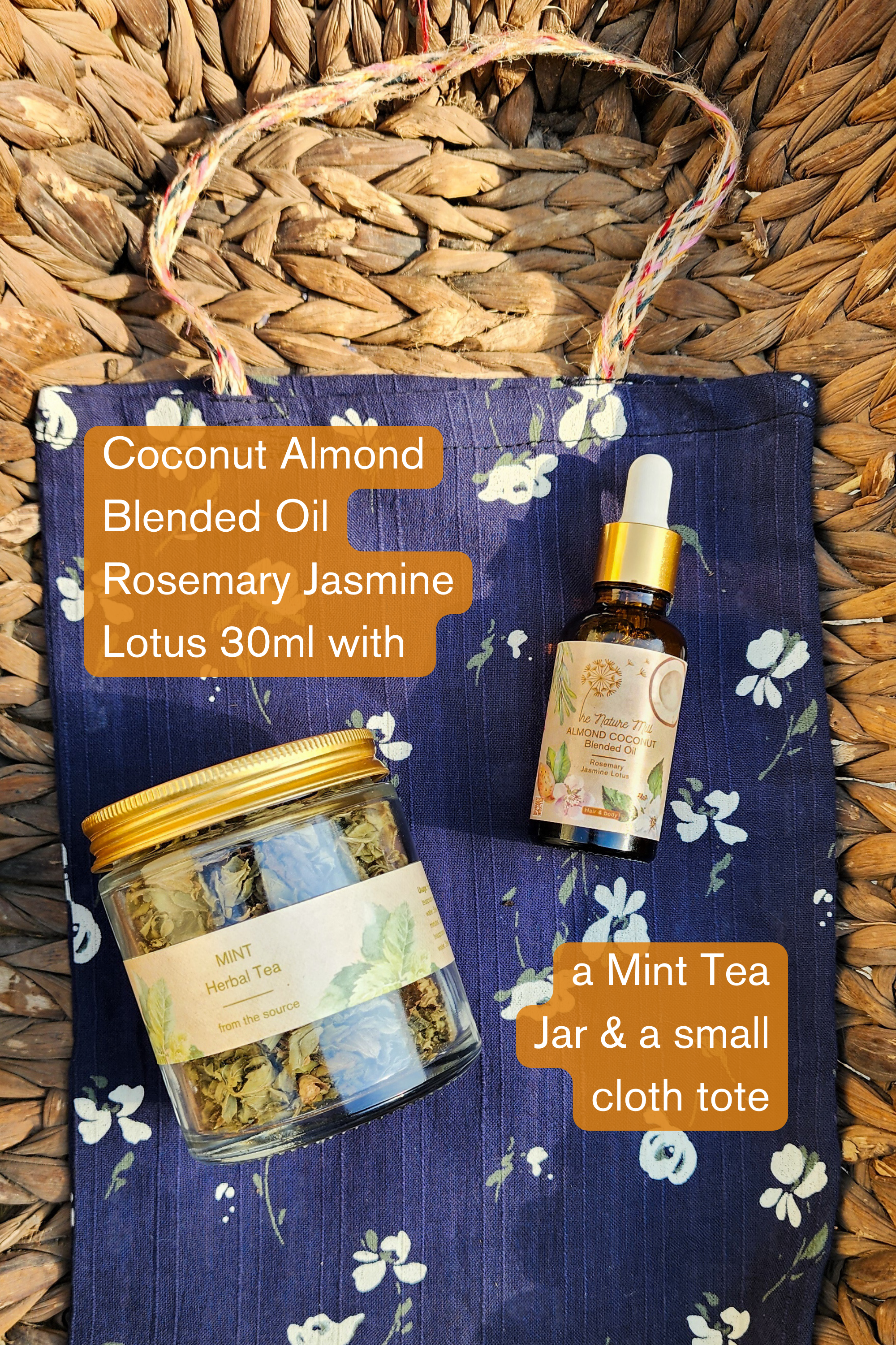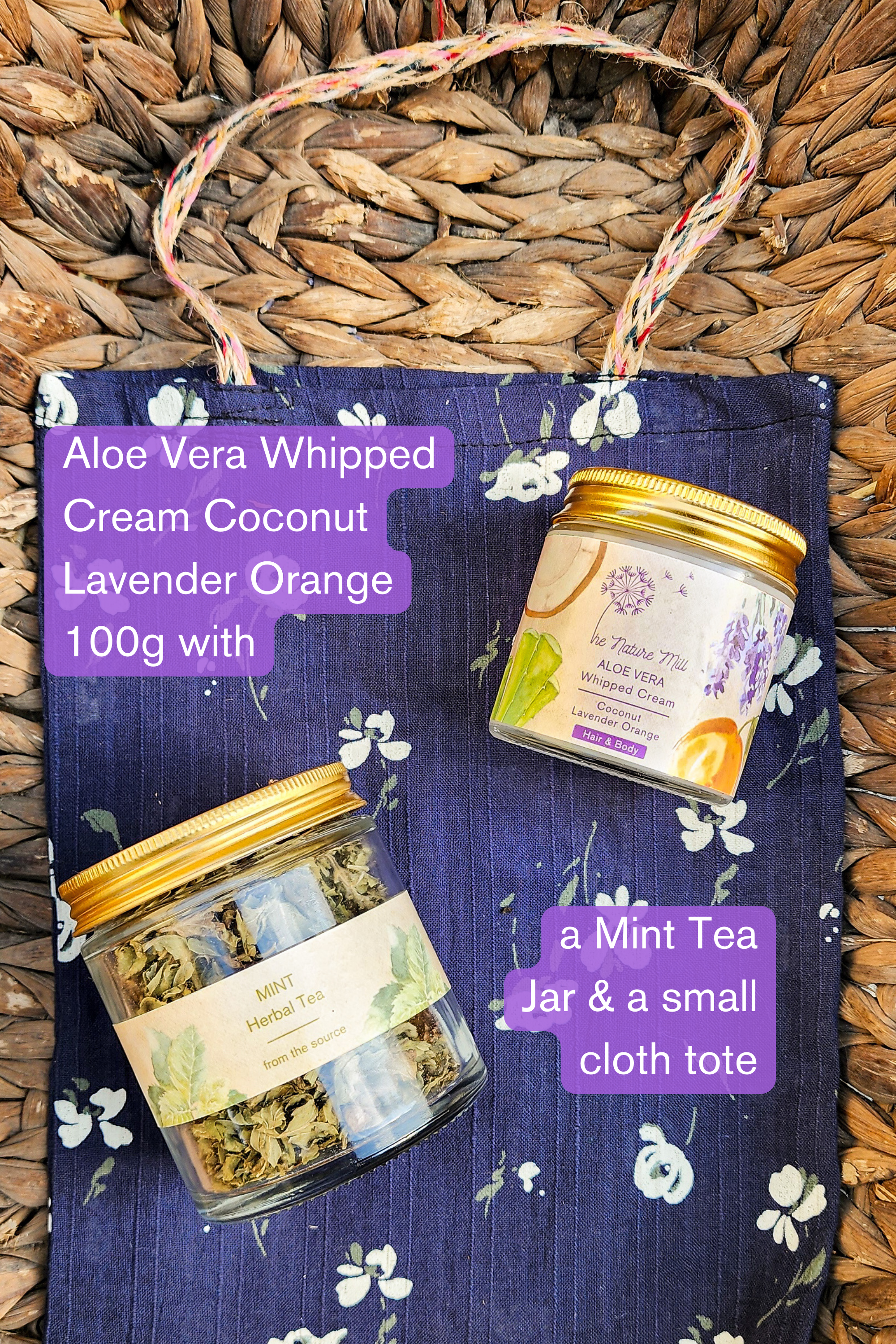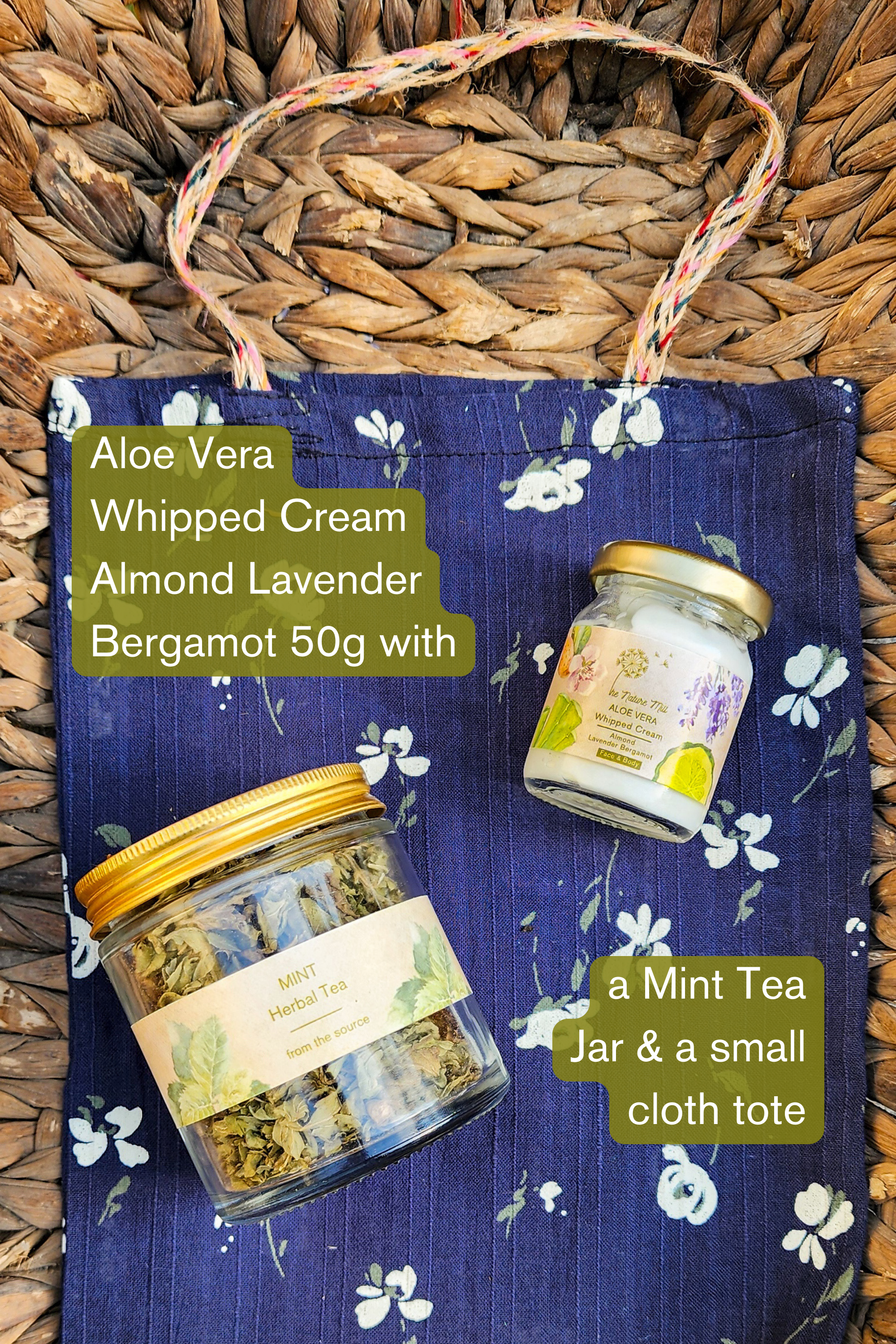A gift set that has 1 wonderful product of ours, along with a jar of mint tea and a small tote bag. A range of options of which product of ours you can include in your set.