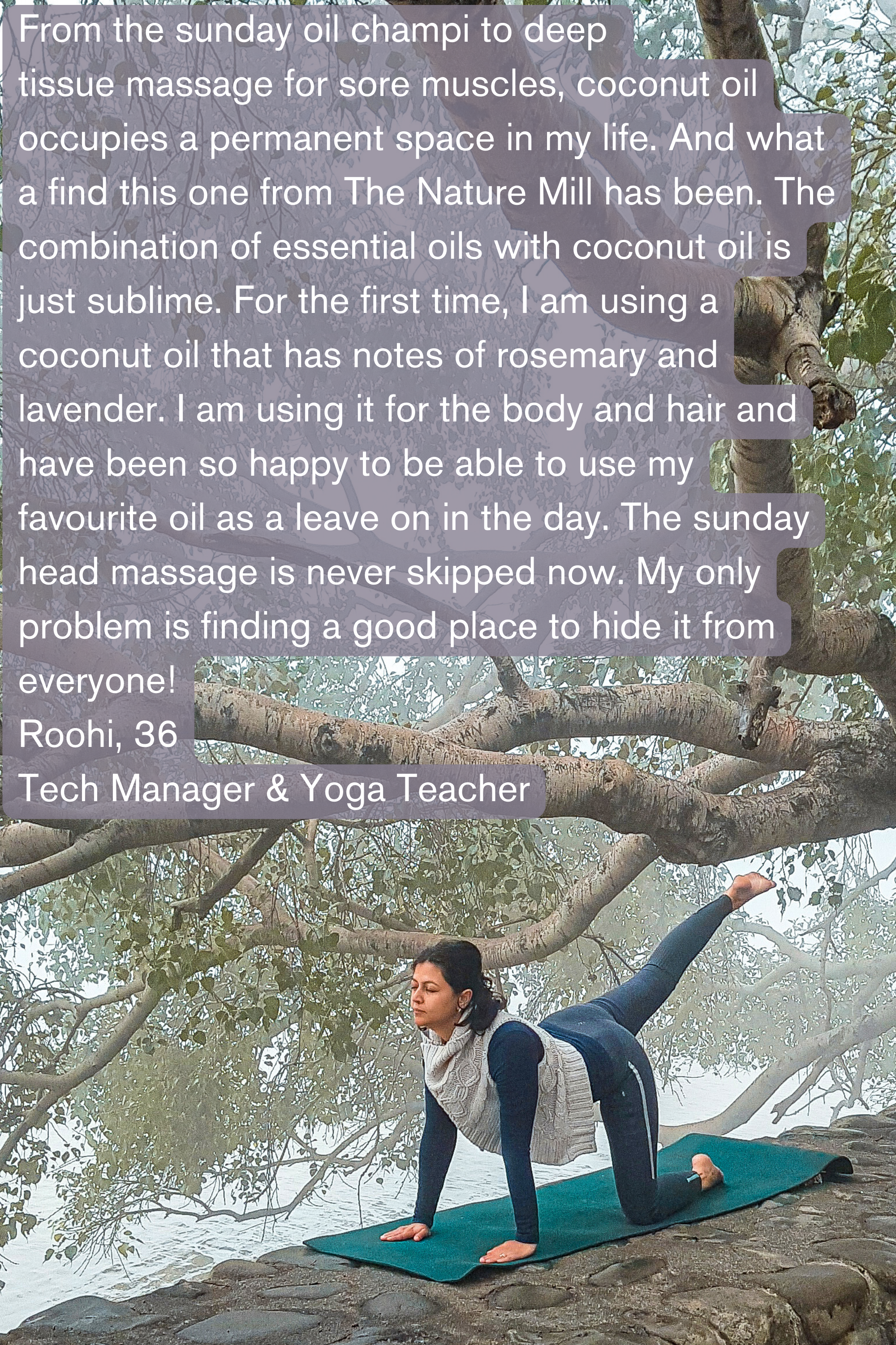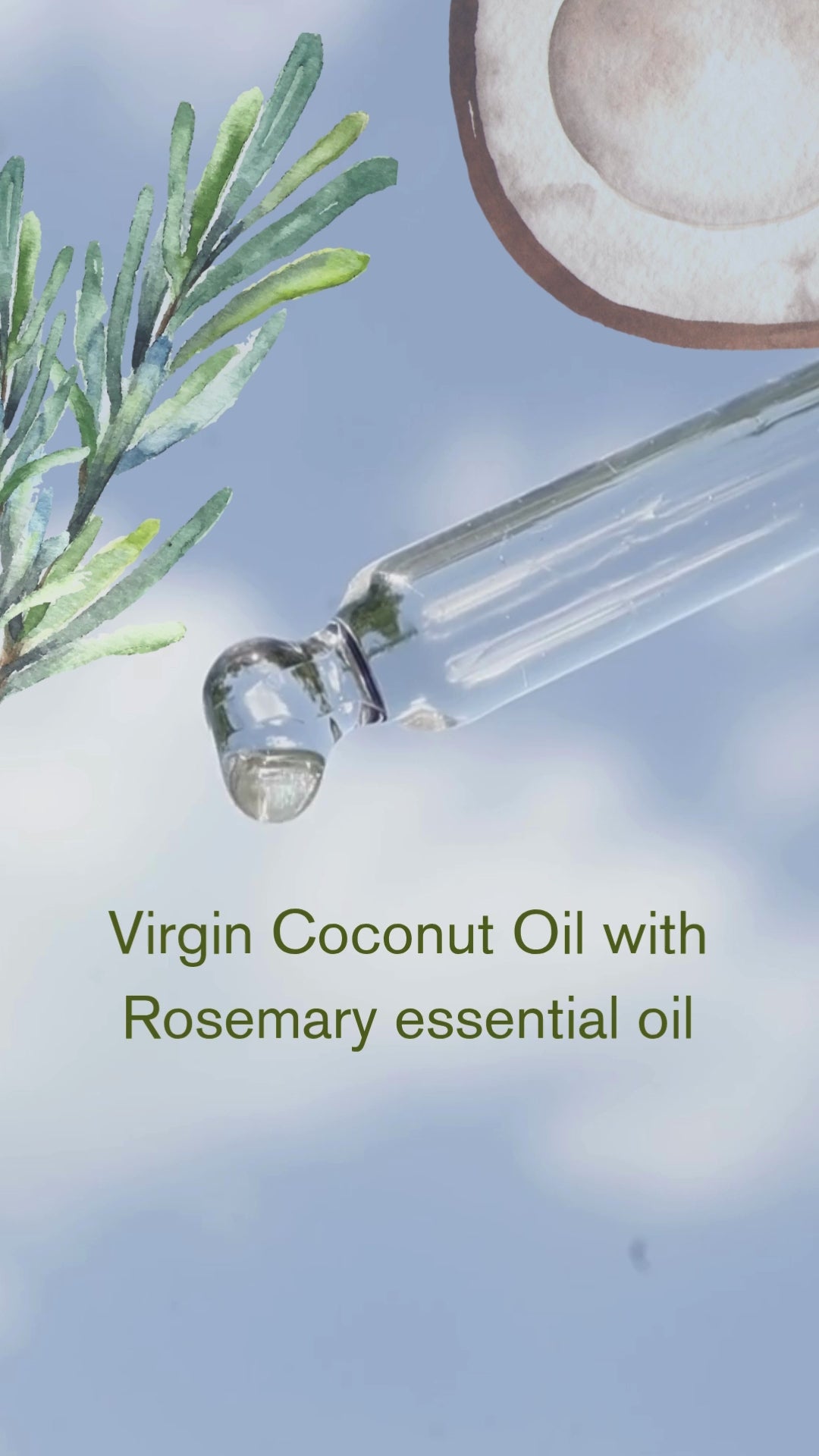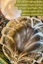 Virgin coconut oil from Tamil Nadu, steam distilled rosemary essential oil