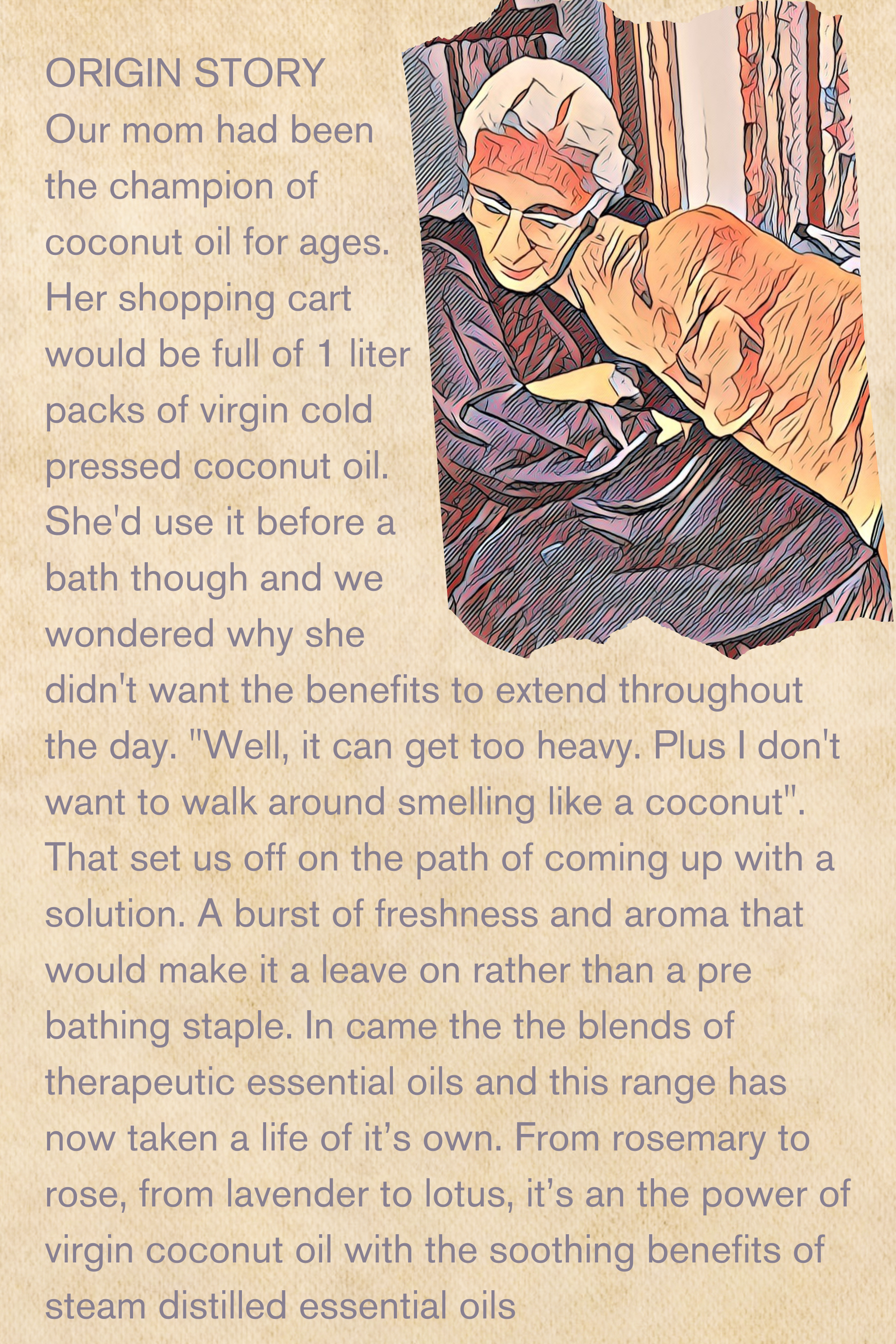 Driven by our chief critic and mom, who loved coconut oil but wasn't using it as much as she would have liked to, because of the strong smell. Voila