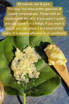 UsageTake a little bit and apply on the skin. It can be used on all areas except the face, including areas like elbows, feet, and hands. It provides deep moisturization for dry to very dry skin. It can be liquid or solid depending on the temperature. At certin temperatures, you might find shea butter granules. It is equally effective in all states, as the elixir melts on contact with the skin. If you want it solid, you can place it in the fridge for a couple of hours. If you like it liquid, you can place the jar in a bowl of hot water to melt it. All natural and pure |
